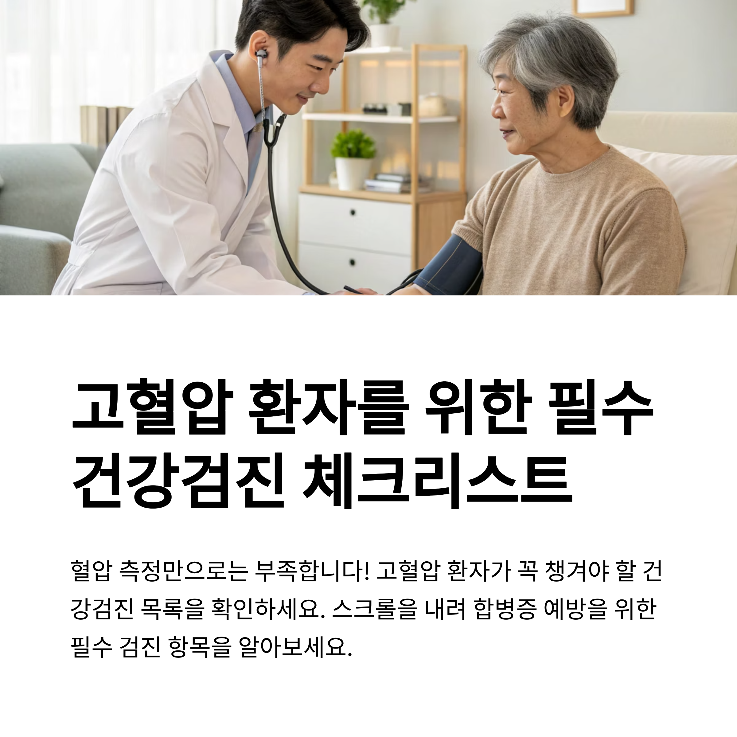 고혈압 환자라면 매년 1회 이상 정기적인 종합검진이 필요합니다.