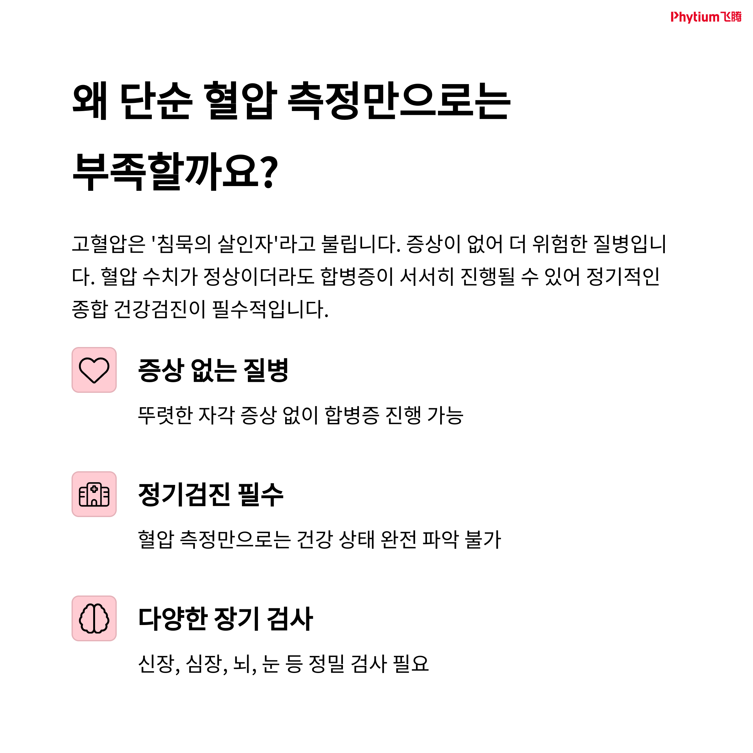 "혈압은 증상이 없는 병이기에, 더 치명적입니다."