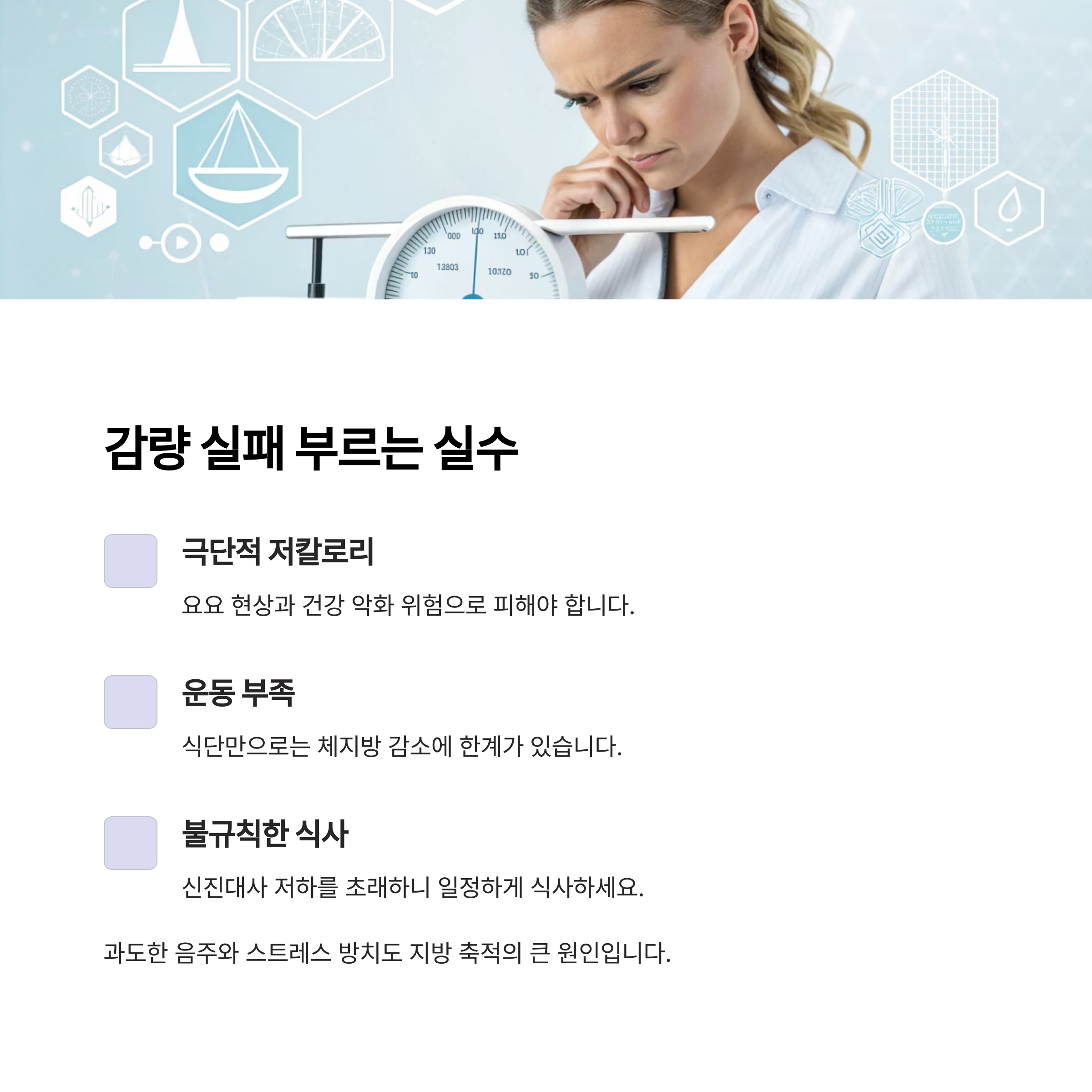 "수면 부족과 스트레스는 체지방 감량의 가장 큰 적입니다."