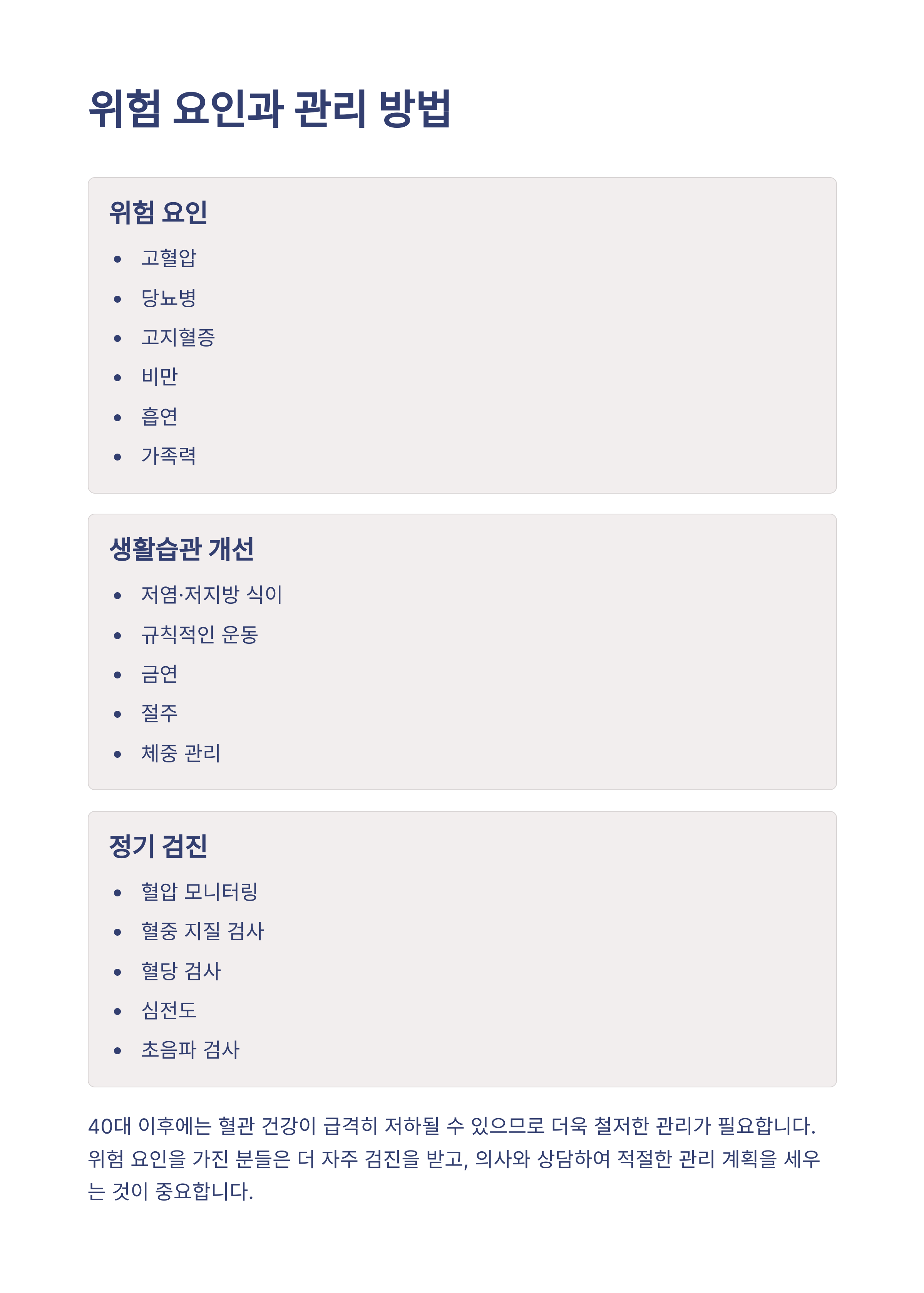 특히 40대 이후부터는 혈관 건강이 급격히 저하되기 때문에 초기 징후를 알아차리는 것이 매우 중요합니다.