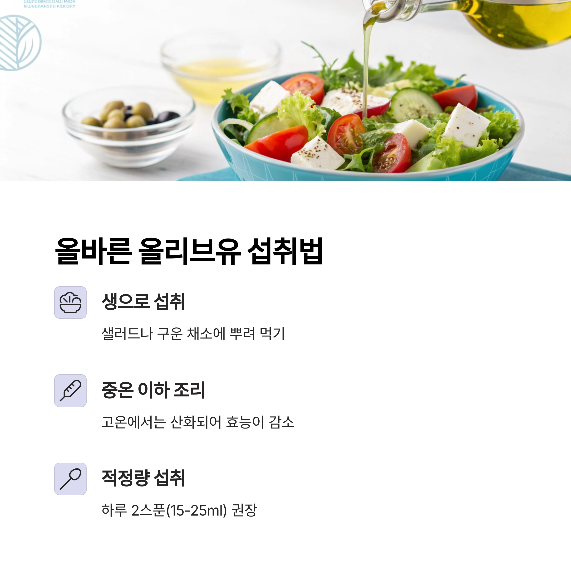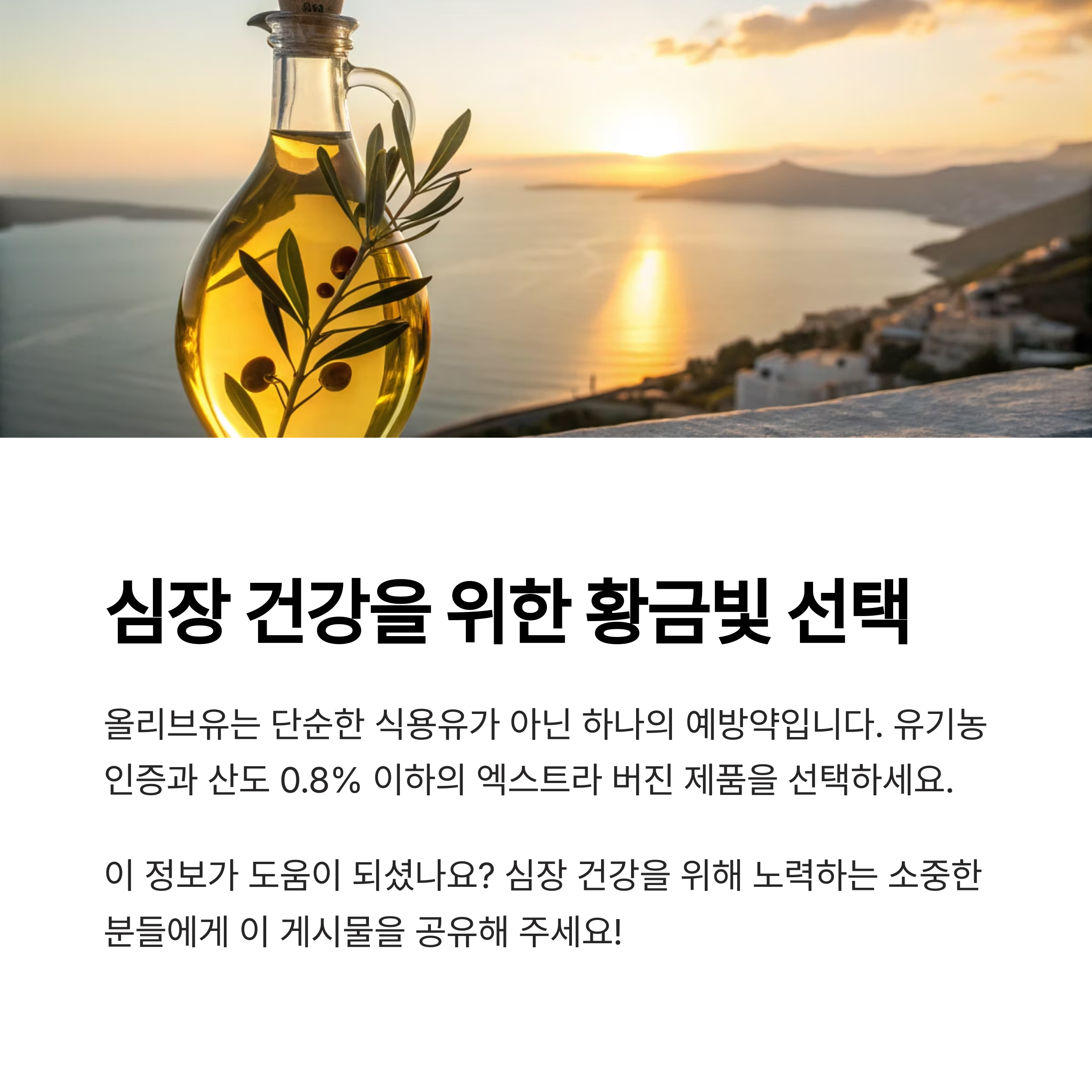 전체적인 영양 균형과 함께 올리브유의 섭취는 심장 건강을 강화하는 토대를 제공합니다.