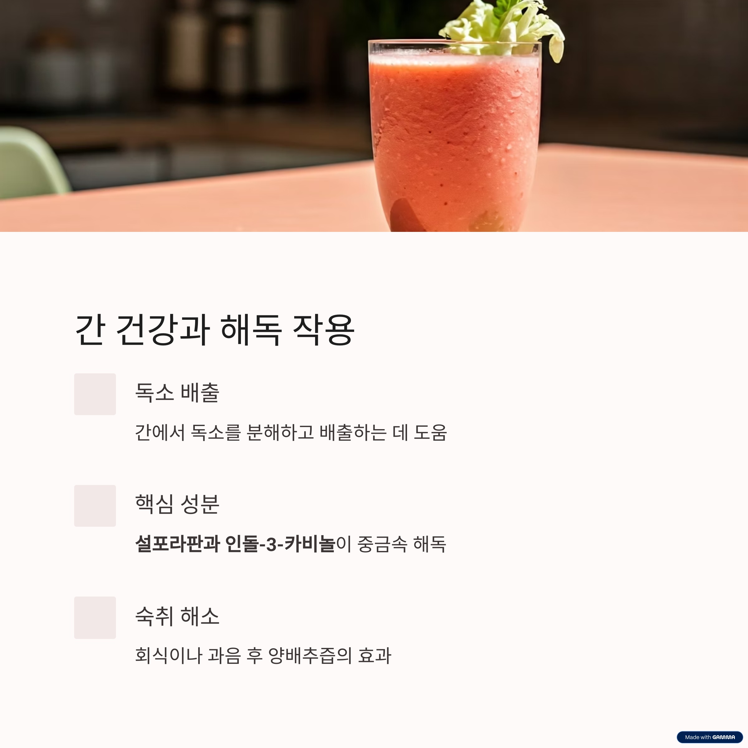 체내 발암물질이나 중금속 해독을 도와 간 건강에 핵심적인 역할을 합니다.