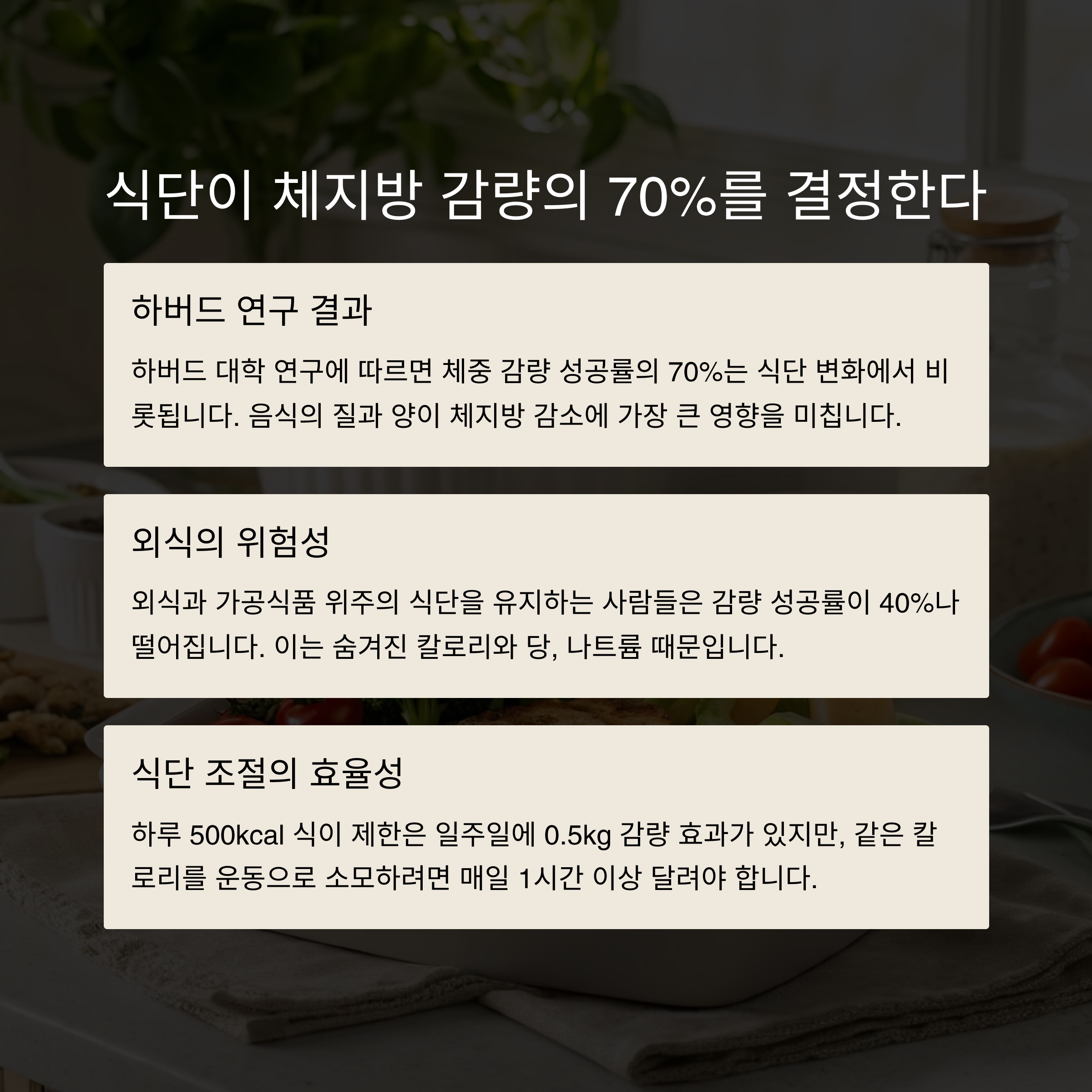 "다이어트는 70%가 식단, 30%가 운동 이라는 말, 들어보셨나요?"