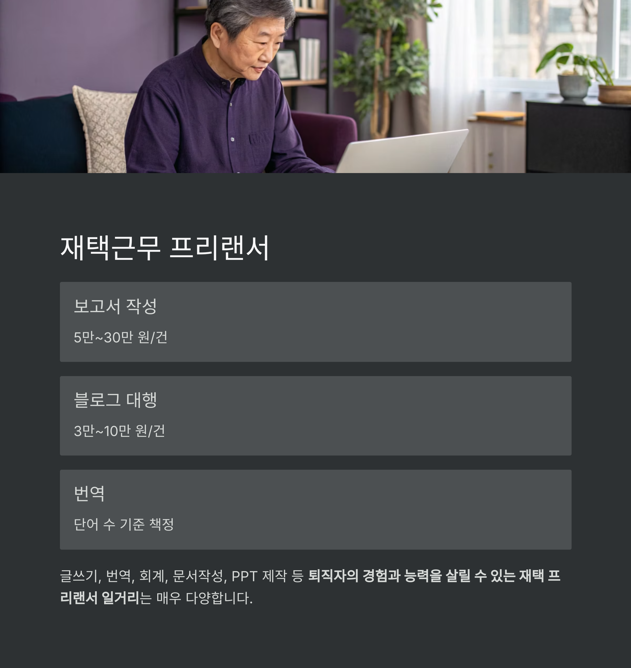 퇴직자의 경험과 능력을 살릴 수 있는 재택 프리랜서 일거리는 매우 다양합니다.