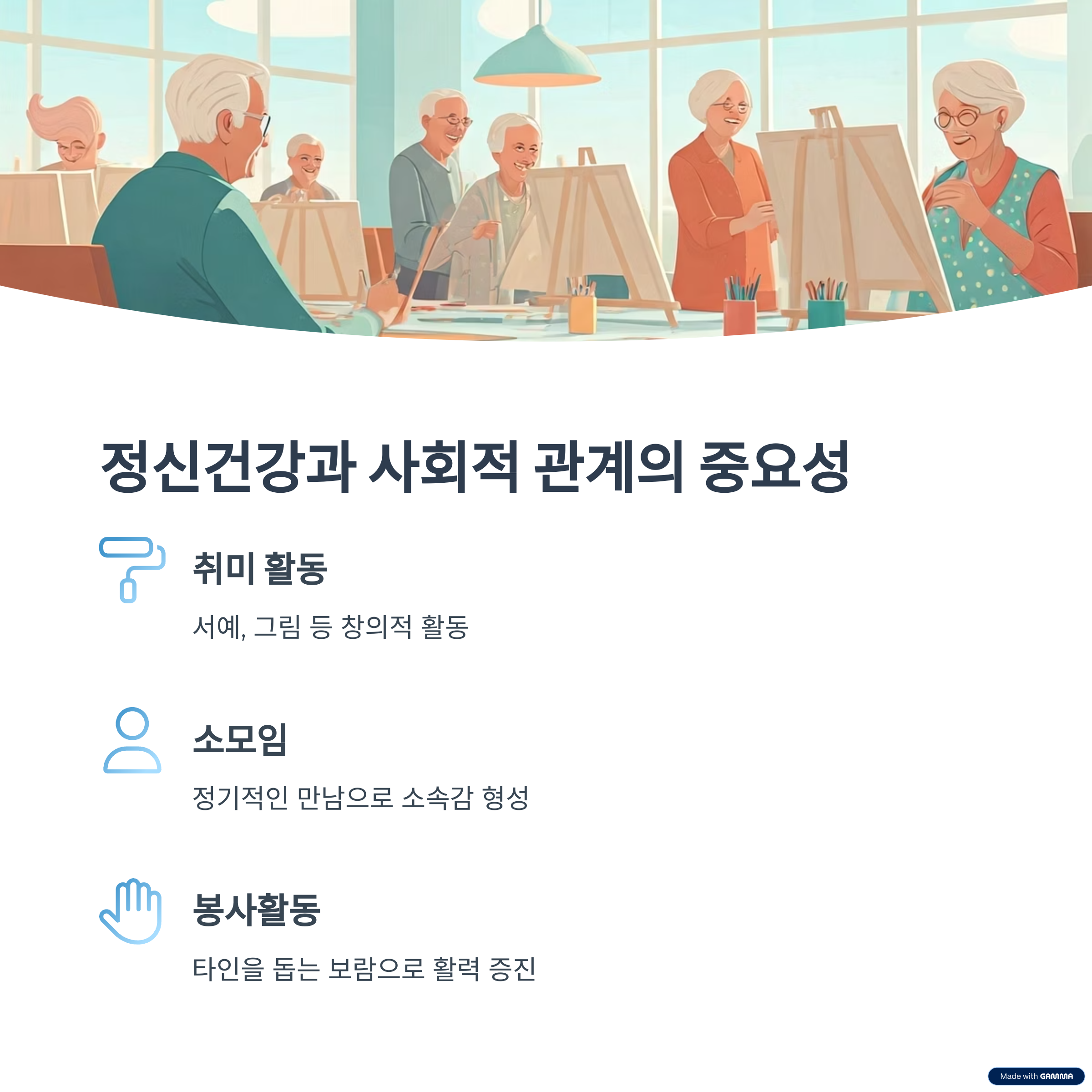 퇴직 후에도 취미 활동, 소모임, 봉사활동 등을 통해 사람들과 계속 교류하는 게 중요해요.