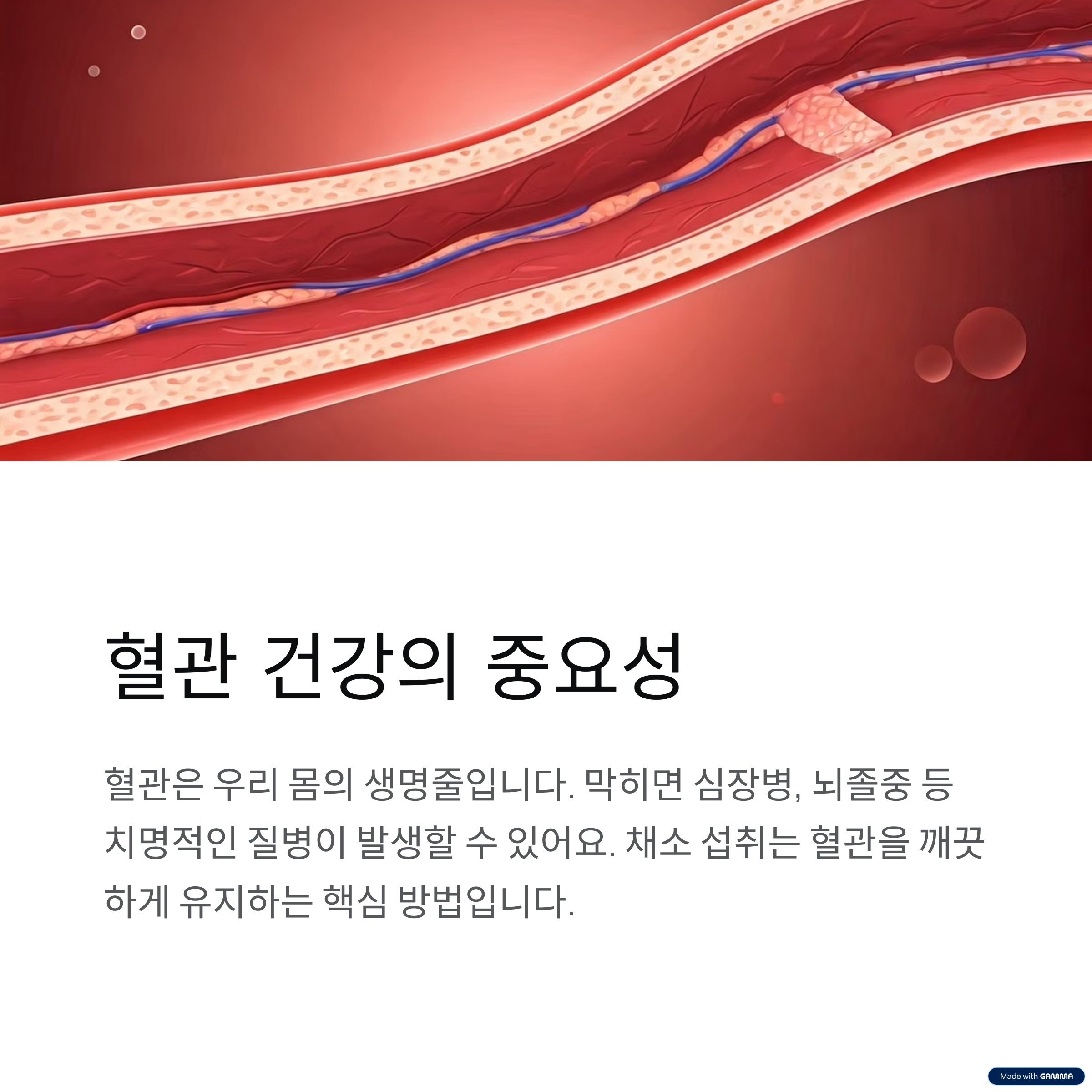 채소 섭취는 혈관을 깨끗하게 유지하는 핵심 방법입니다.