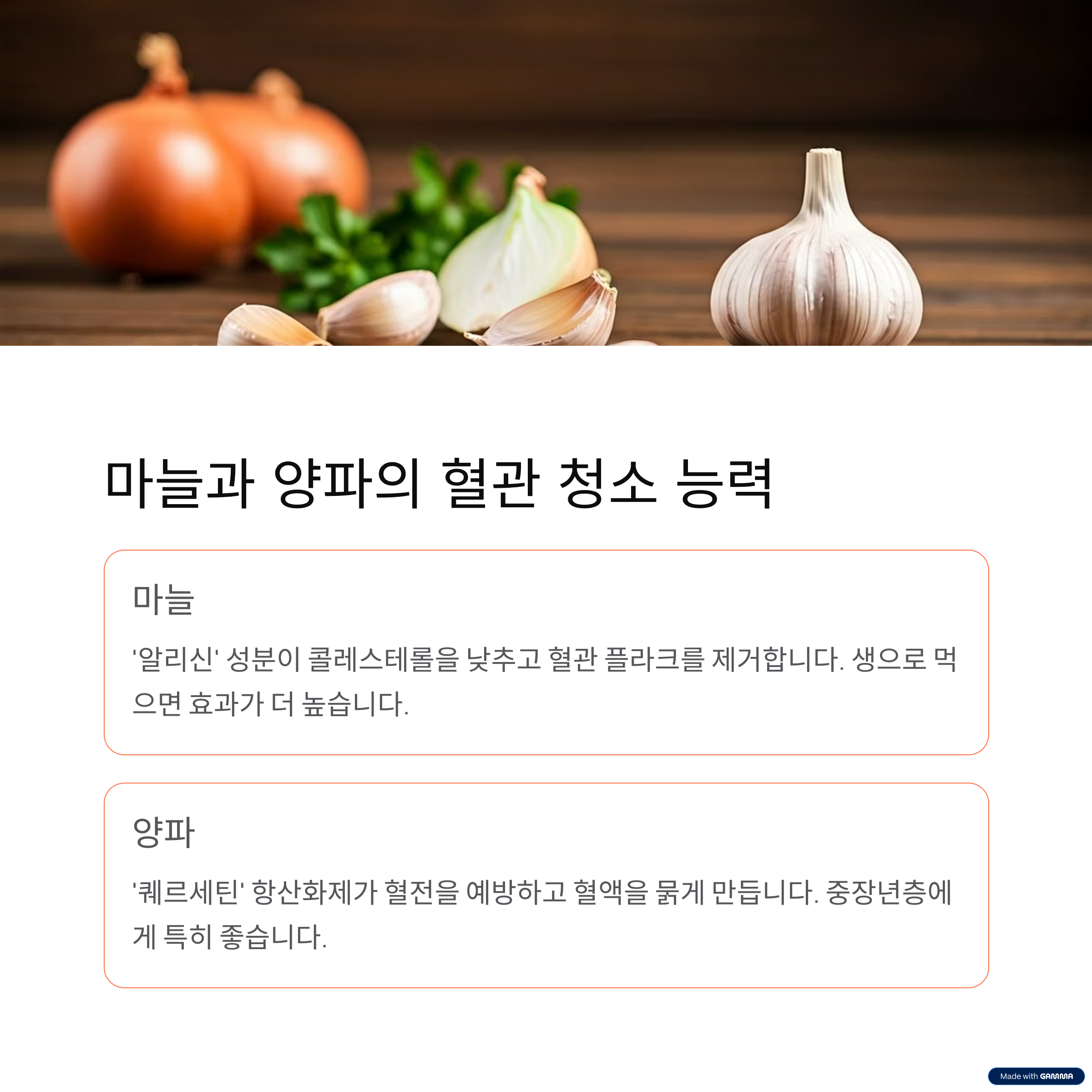 혈전 예방이 중요한 중장년층에게 특히 추천되는 채소입니다.