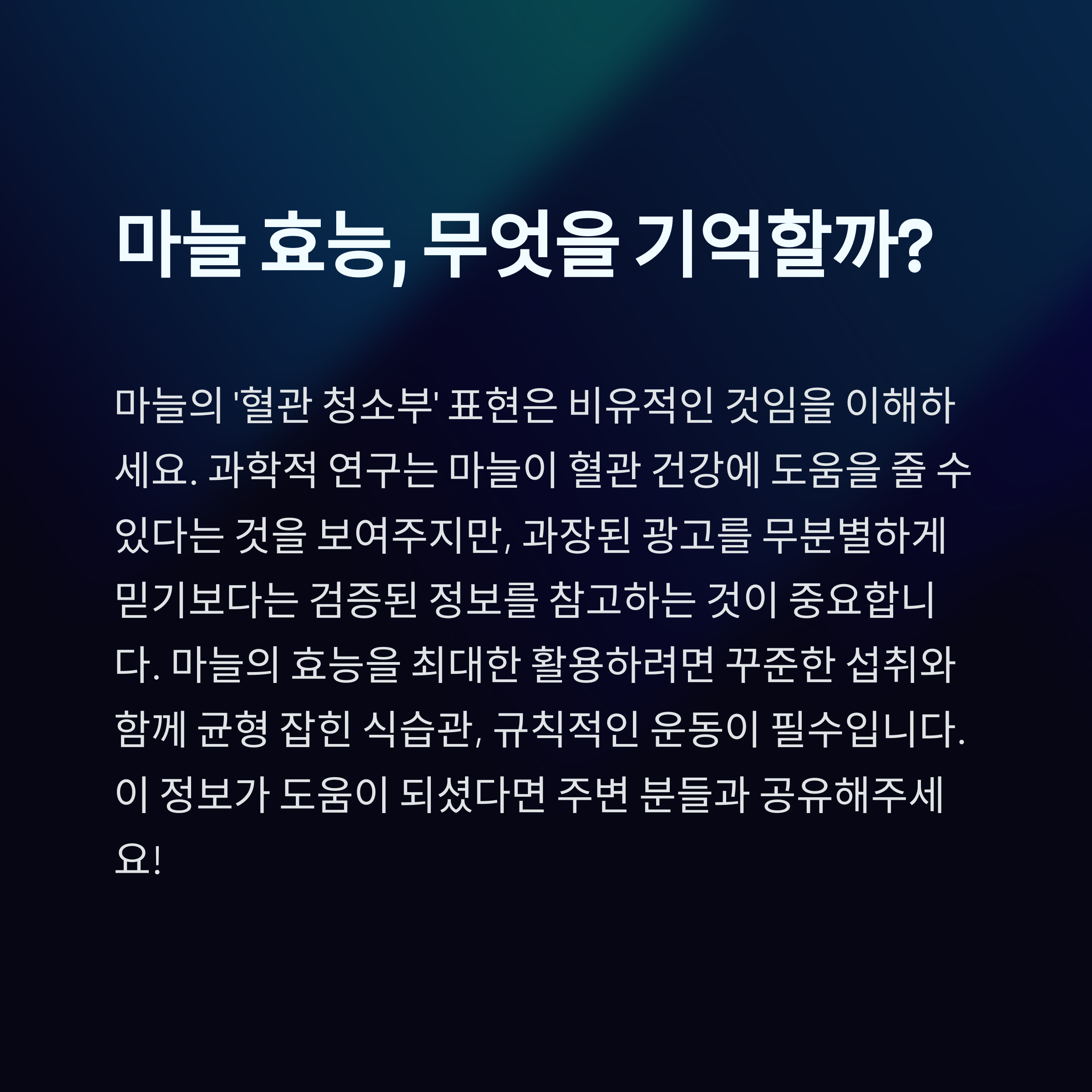 이 글에서는 마늘의 성분이 실제로 혈관 건강에 어떤 작용을 하는지,