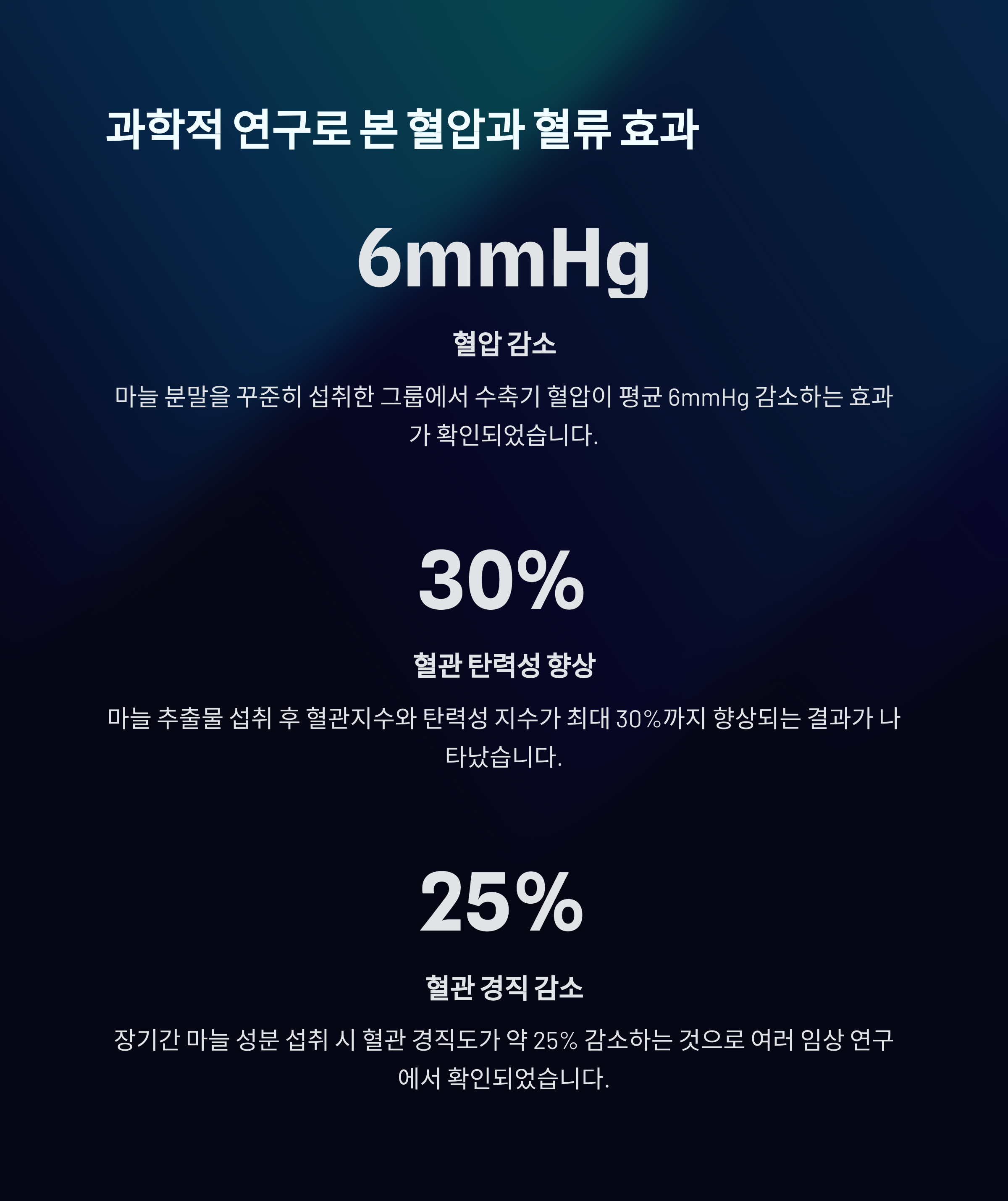 중요한 점은 이 모든 효과가 일정 용량 이상의 마늘 또는 보충제를 꾸준히 섭취했을 때 나타났다는 것입니다.